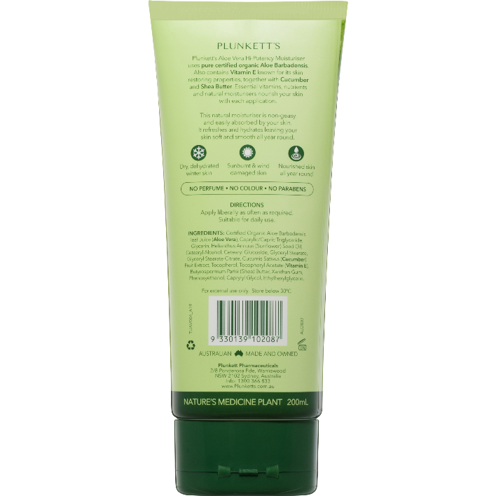 Plunkett's Hi-Potency Pure Aloe Vera Moisturiser 200mL