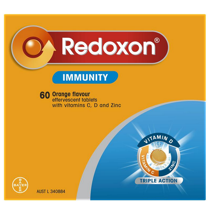 Redoxon Immunity Vitamin C, D and Zinc Orange Flavoured Effervescent 60 Tablets ( expiry 3/26)