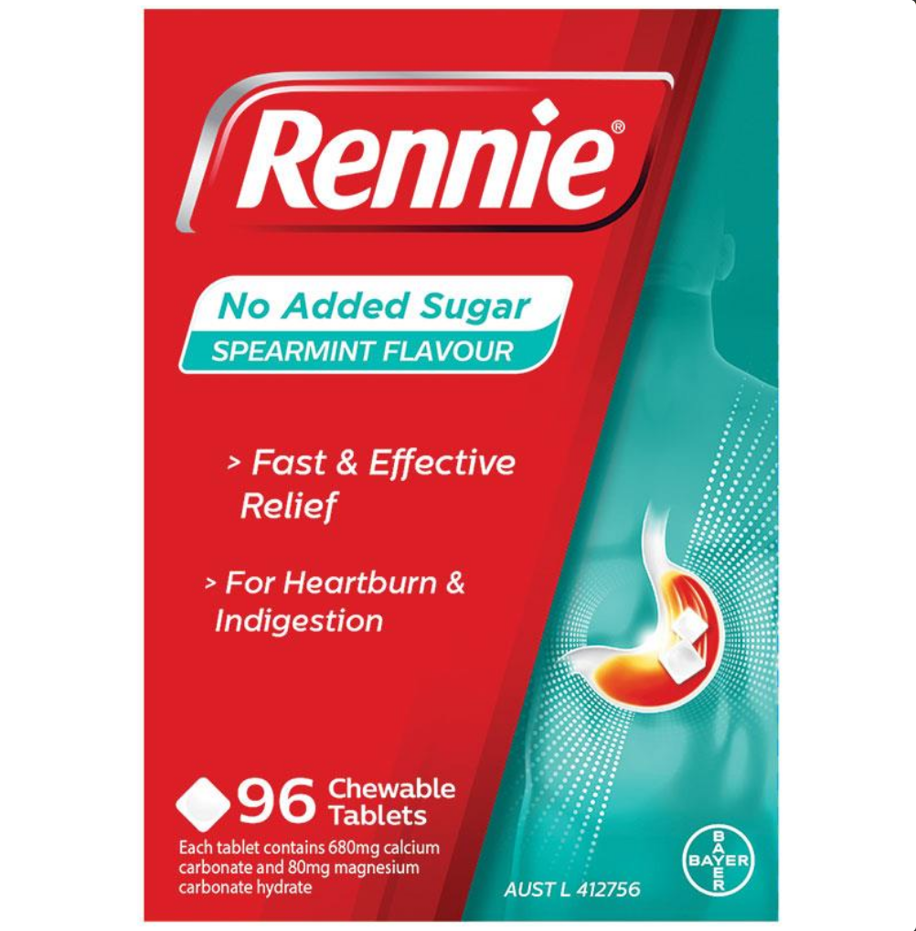 Rennie No Added Sugar Spearmint 96 Tablets
