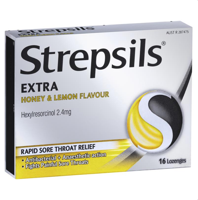 Strepsils Extra Honey Lemon Lozenges Fast Numbing Sore Throat Pain Relief with Anaesthetic 16 Pack