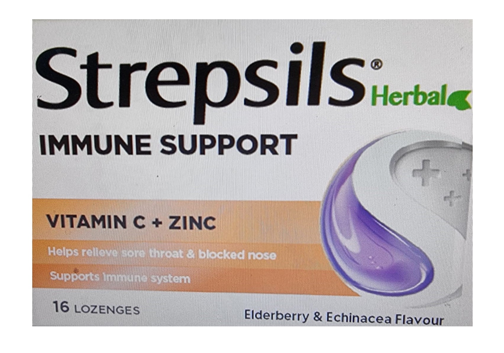 Strepsils Herbal Immune Support Lozenges Elderberry Echinacea 16 Pack