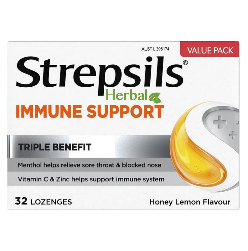 Strepsils Herbal Immune Support Lozenges Honey Lemon 32 Pack