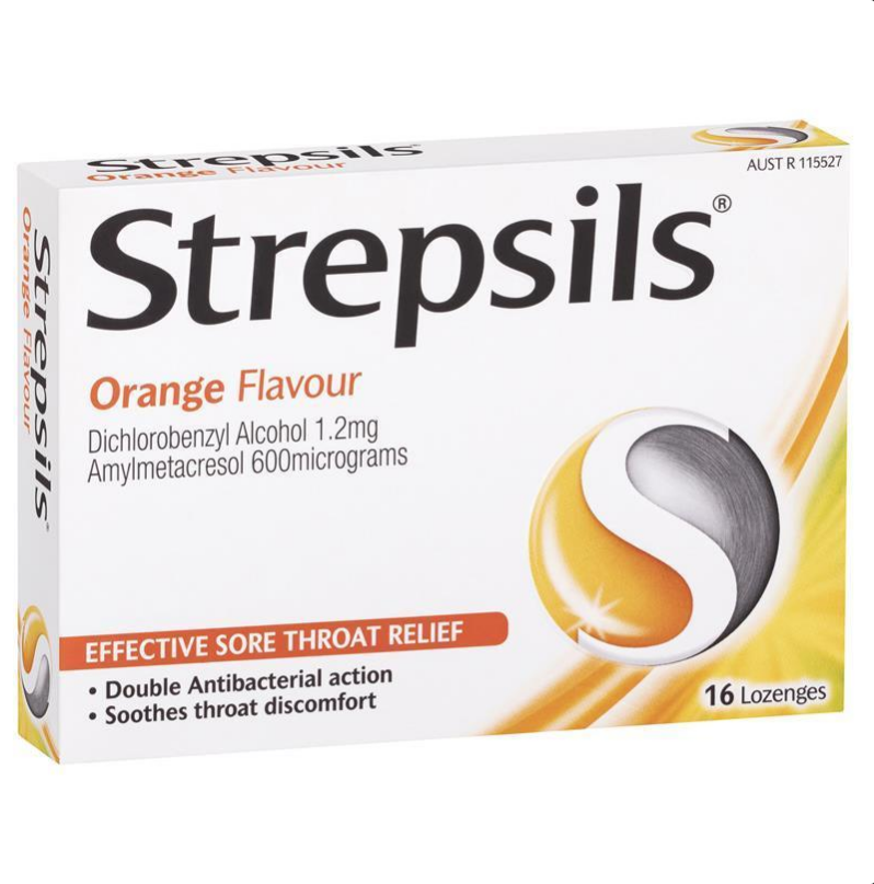 Strepsils Soothing Lozenges Orange Sore Throat Double Antibacterial 16 Pack