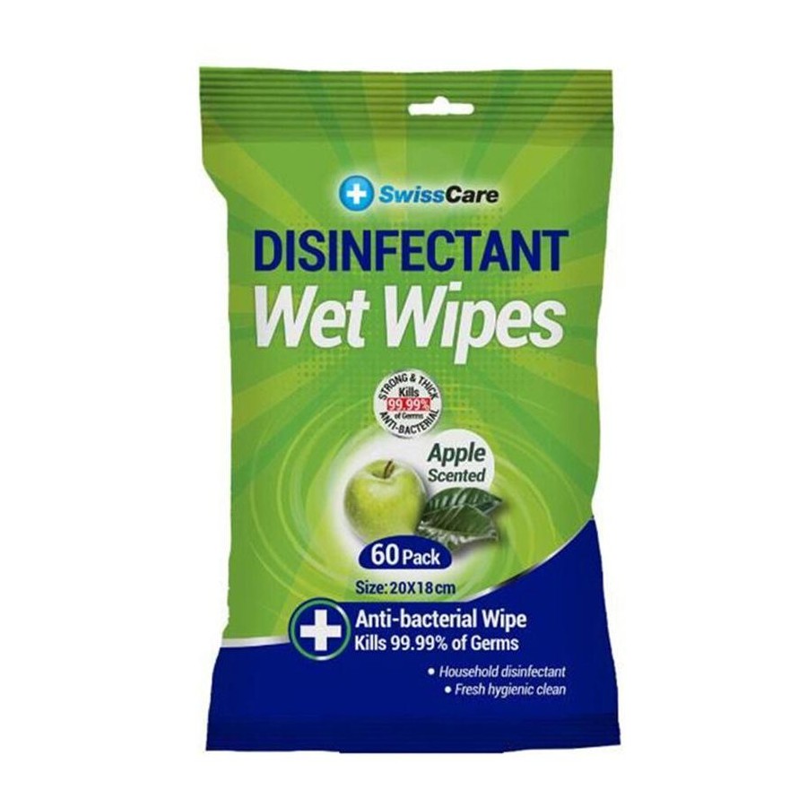 SwissCare Antibacterial Disinfectant Wet Wipes Apple 60 Pack