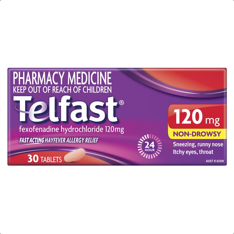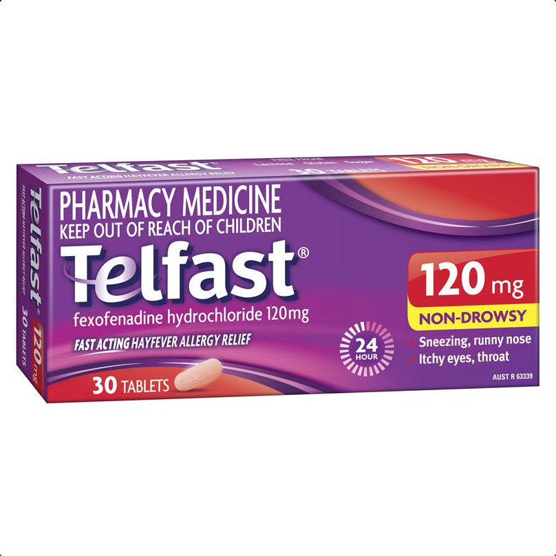 Telfast 120mg 30 Tablets - Antihistamine for Hayfever Allergy Relief (Limit ONE per Order)