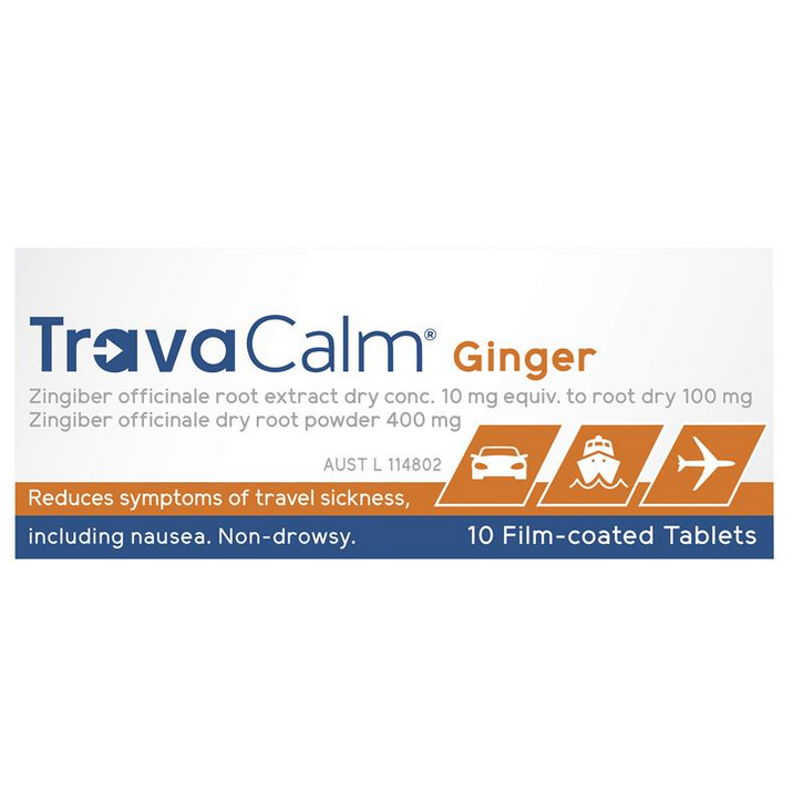 Travacalm Ginger Travel Sickness Natural 10 Tablets