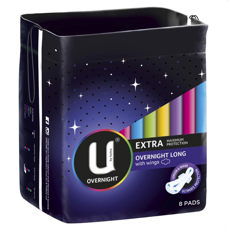 U by Kotex Maxi Pad Overnight Long Wing 8 Pack