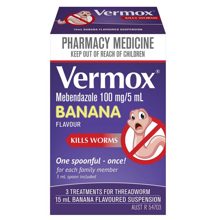Vermox Worming Treatment Banana Flavoured Liquid 15mL (Limit ONE per Order)