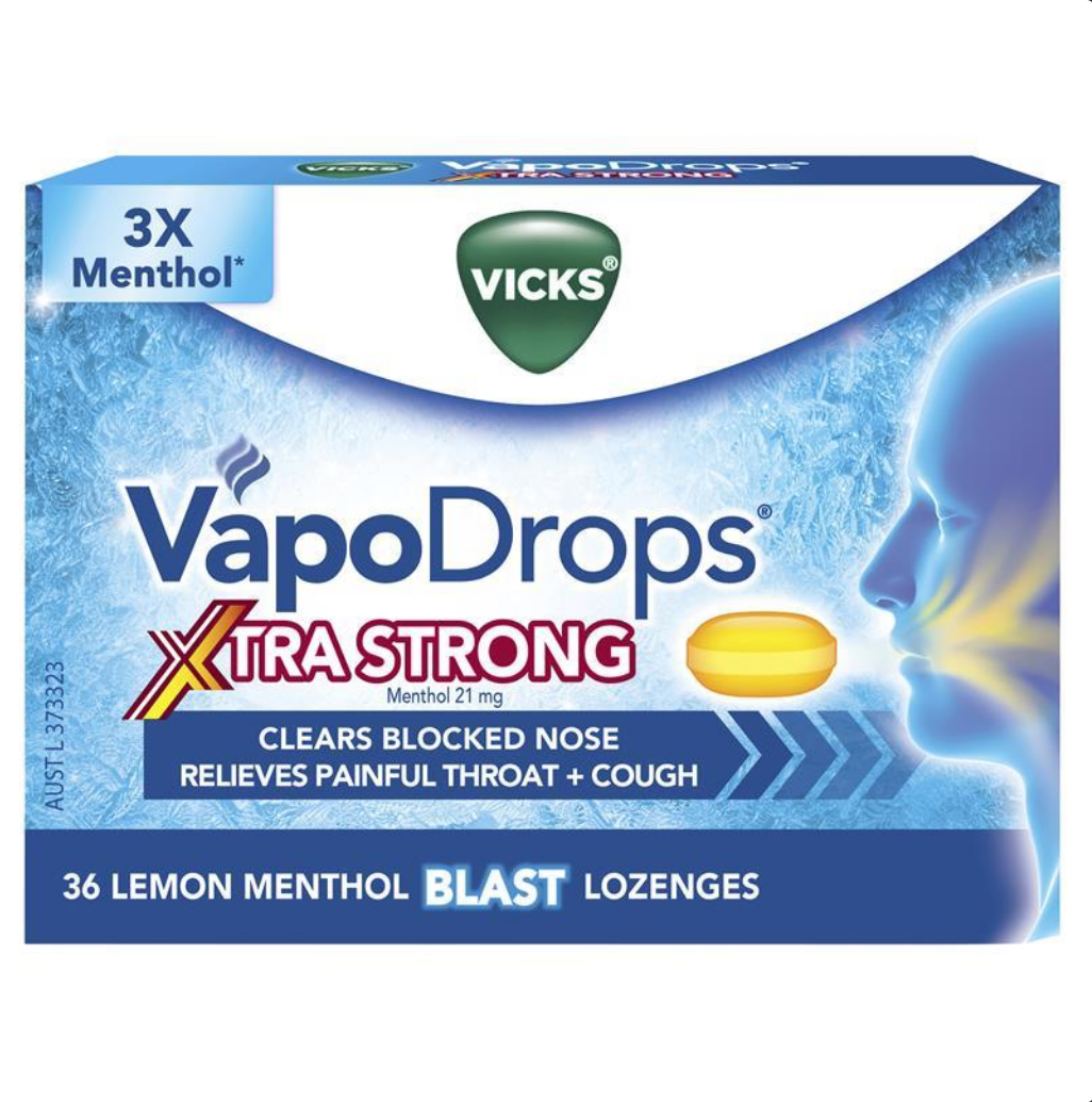 Vicks VapoDrops + Cough Xtra Strong Lemon Menthol Blast 36 Lozenges