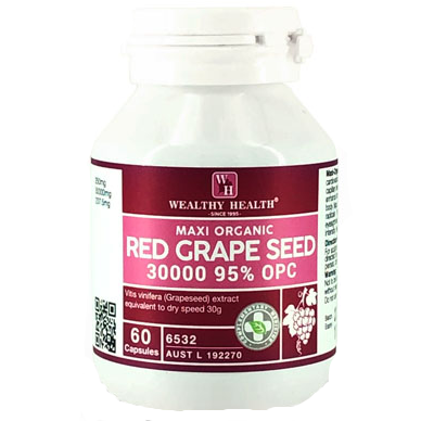 Wealthy Health Maxi Organic Red Grape Seed 30000 95%OPC 60 Capsules