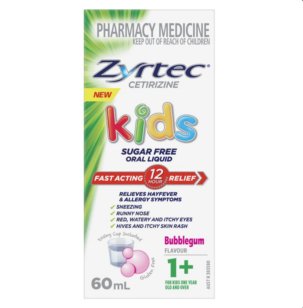Zyrtec Kids Antihistamine Allergy & Hayfever Oral Liquid Bubblegum 60mL (LIMIT of ONE per ORDER)